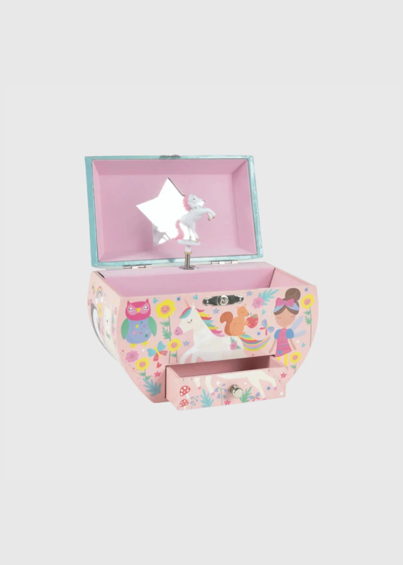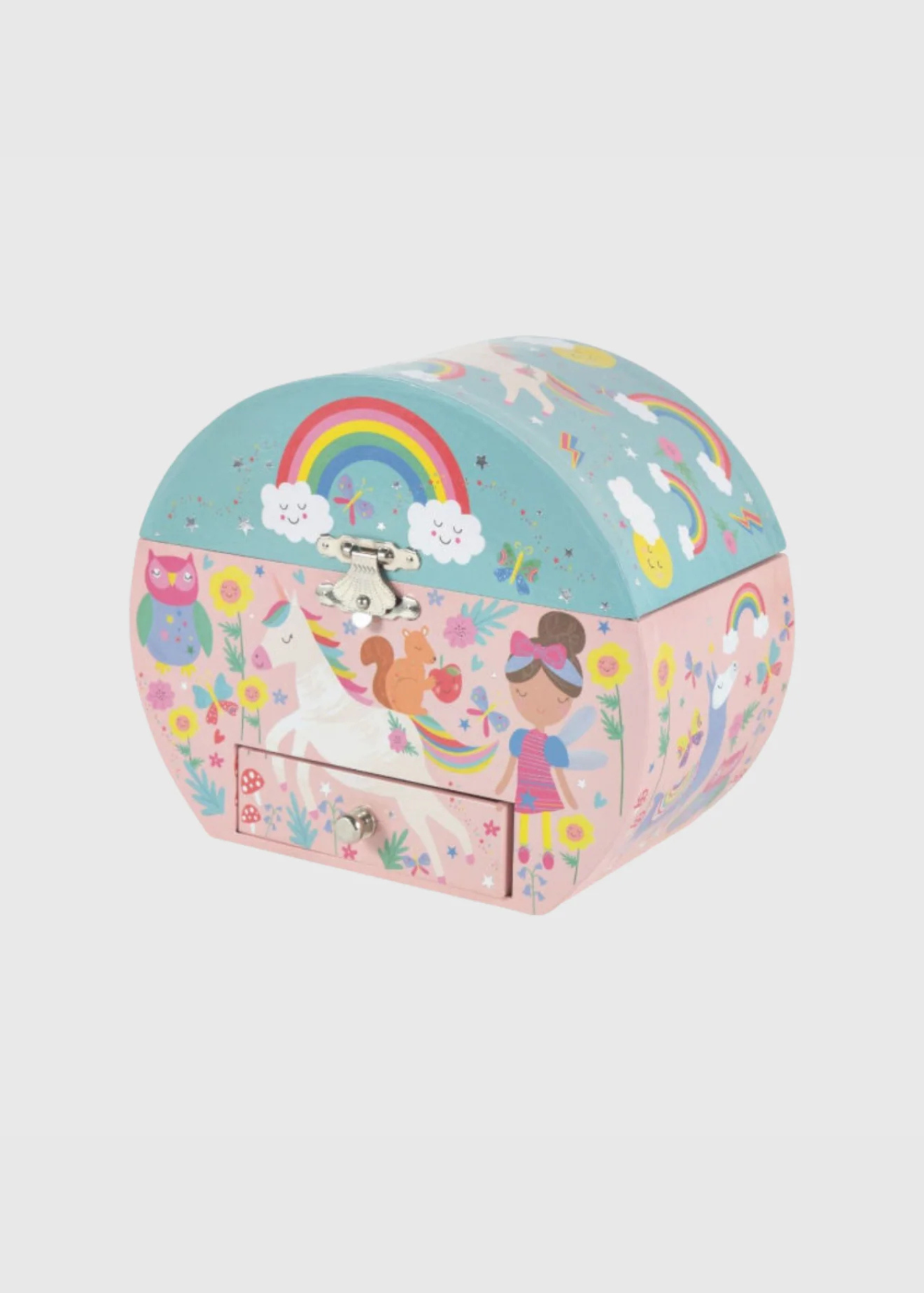 ¡Joyero & Cajas musicales, uno de los productos más vendidos! El joyero circular de Hadas & Arcoíris está cubierto de hermosas ilustraciones de hadas, unicornios, arcoíris y más. El práctico cajón es perfecto para almacenar joyas y atesorarlas. Dale cuerda en la parte posterior, levanta la tapa y ve al unicornio mágico girando con la melodía.