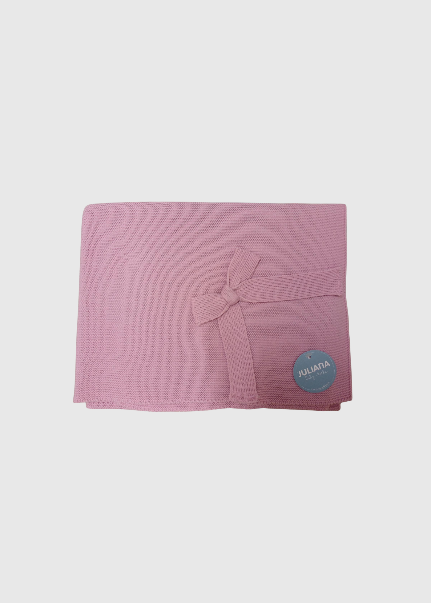 Manta de punto vibrante en color fucsia o magenta. Presenta un lazo decorativo cosido y un tejido liso y cálido.